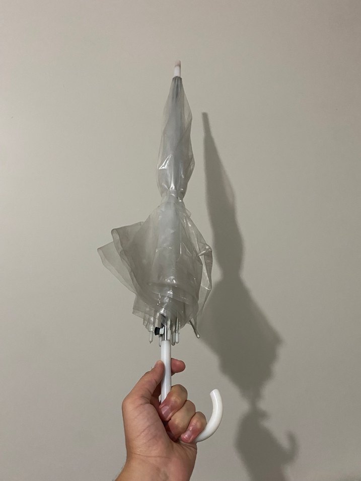 Şeffaf örtüsü ve beyaz sapı ile avant-garde tarzı yansıtan, gri ve beyaz tonlarda kadın şemsiyesi. ☂️
