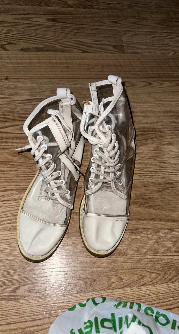 Şeffaf yanları ve tokalı detaylarıyla beyaz stiletto topuklu bot, sokak modası ve athleisure tarzını günlük kullanım için birleştiriyor. ⚡