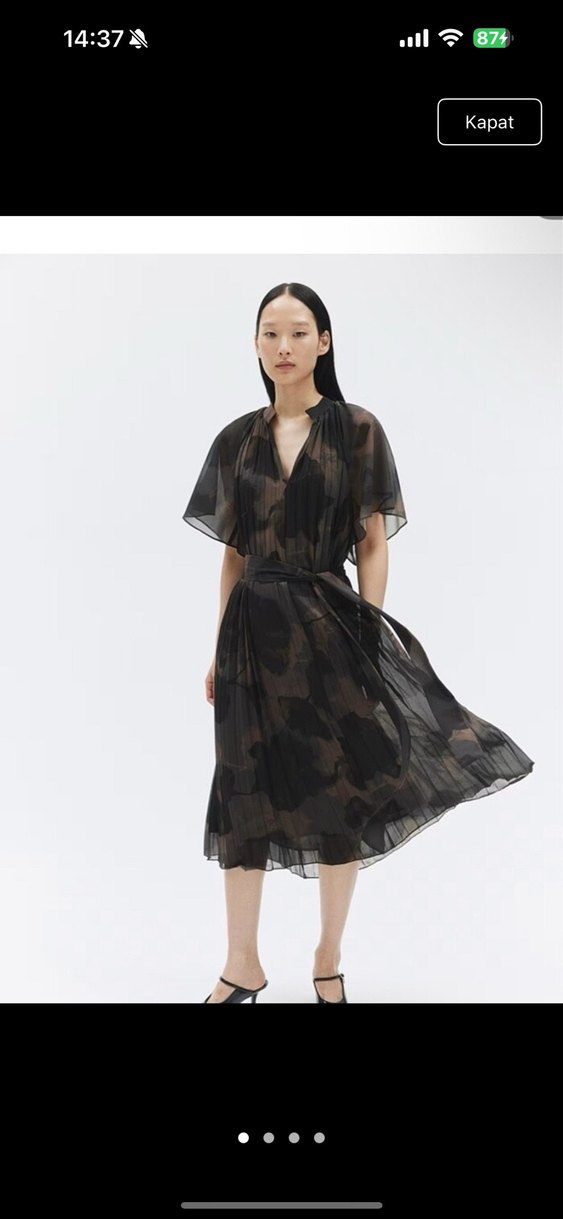 Şeffaf, ipeksi kumaştan yapılmış, bağlamalı ve bol kesimli uzun elbise. Koyu tonlarda batik desenli, kısa kollu ve V yakalı, çağdaş ve avangart tarzda.