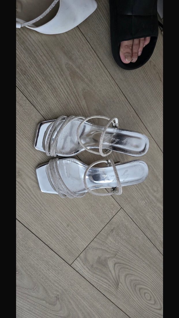 Minimalist tasarımlı, cam bantlı ve tokalı modern stiletto topuklu kadın ayakkabısı. Düğün gibi özel günler için uygun, bej ve gri tonlarında şık bir seçim.