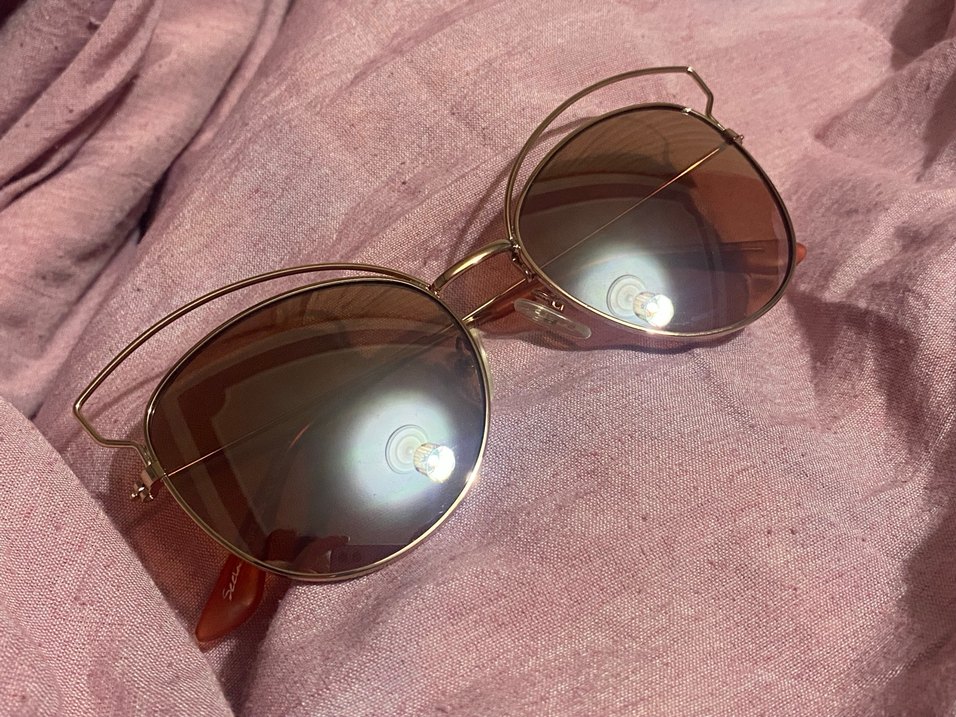Bu bohem tarz güneş gözlüğü, parlak bej şeffaf çerçeveleri ve yuvarlak camlarıyla Parisli retro ve hippie havasını birleştiriyor. Seen marka pembe camlı kenarları gold detaylı güneş gözlüğü. Kutulu gönderim yapılacaktır.
