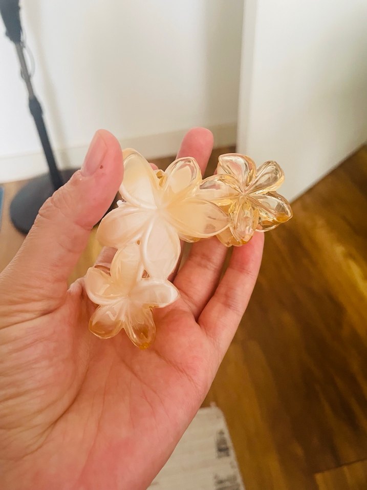 Bej renginde şeffaf plastikten yapılmış, lotuslu şeklinde minimalist bohem tarzda saç tokası. Retro ve hippie stillerle uyumlu.