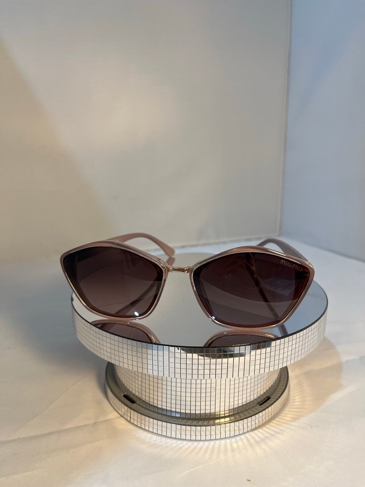 Çağdaş tarzda, şeffaf çerçeveli ve parlak bej kadın güneş gözlüğü, klasik zarafeti yansıtıyor.