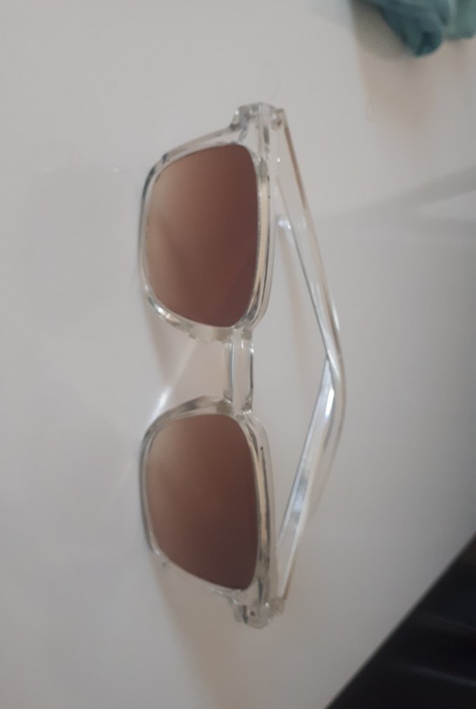 Şeffaf çerçeveli ve açık bej renkli camlara sahip kadın güneş gözlüğü, minimalist ve çağdaş bir tarz sunar.