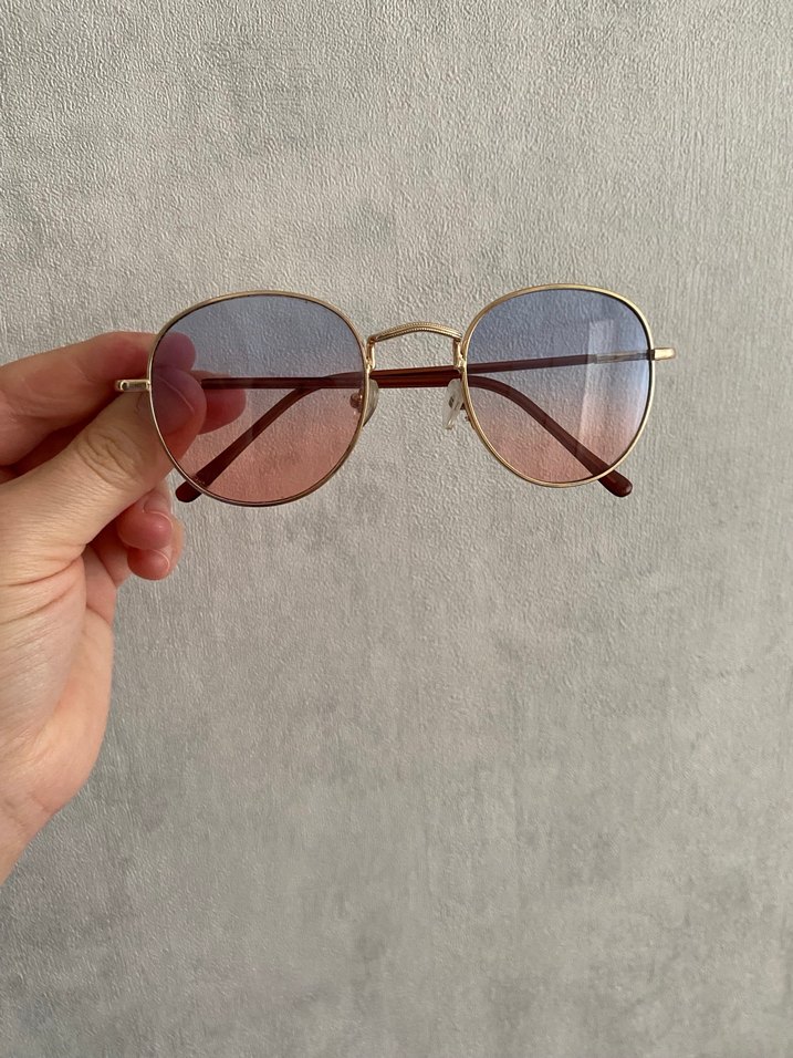 Şeffaf bej çerçeveli, pastel degrade lenslere sahip kadın güneş gözlüğü. Minimalist tasarım, retro ve bohem tarzıyla birleşiyor.