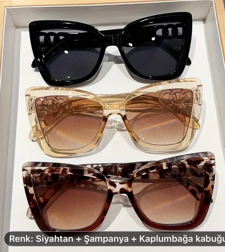 Şeffaf bej çerçeveli modern klasik kadın gözlüğü, bohem ve retro tarz sunar. Siyah, şampanya ve kaplumbağa kabuğu renk seçenekleri mevcuttur. ️ TOPLAM 3 ADET BAYAN GÖZLÜK SETİ