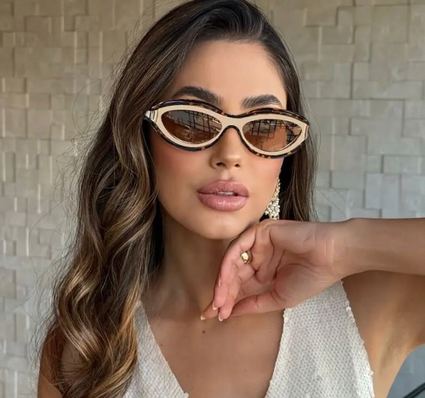 Parlak bej ve şeffaf detaylı, cesur ve çağdaş kadın güneş gözlüğü, göz alıcı bir görünüm sağlar.