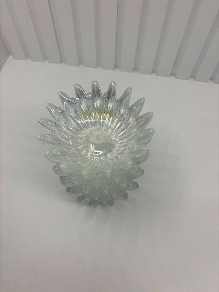 Şeffaf beyaz, sivri uçlu tasarıma sahip cam cerezlık Herhangı bu sorunu yoktur