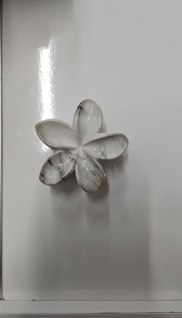 Şeffaf beyaz camdan yapılmış, çiçek şeklinde minimalist ve çağdaş tasarıma sahip saç aksesuarı. Bohem ve retro tarzlara uygundur.