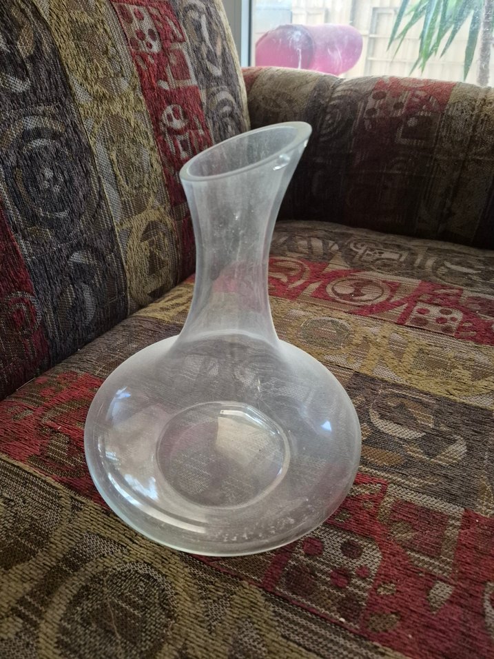 Geniş tabanlı ve dar boyunlu şeffaf beyaz dekoratif vazo. Düzgün yüzeyli ve modern kıvrımlı tasarıma sahiptir.