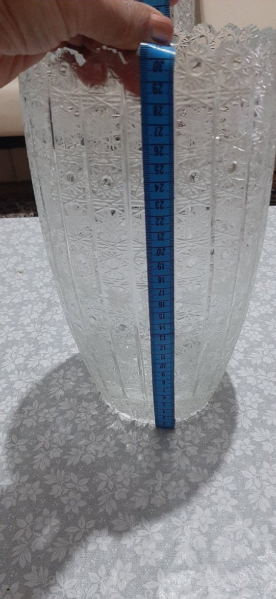 Şeffaf Beyaz Desenli Vazo 35 yıllık antika