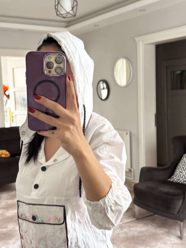 Şeffaf Beyaz Kapüşonlu Kadın sweat