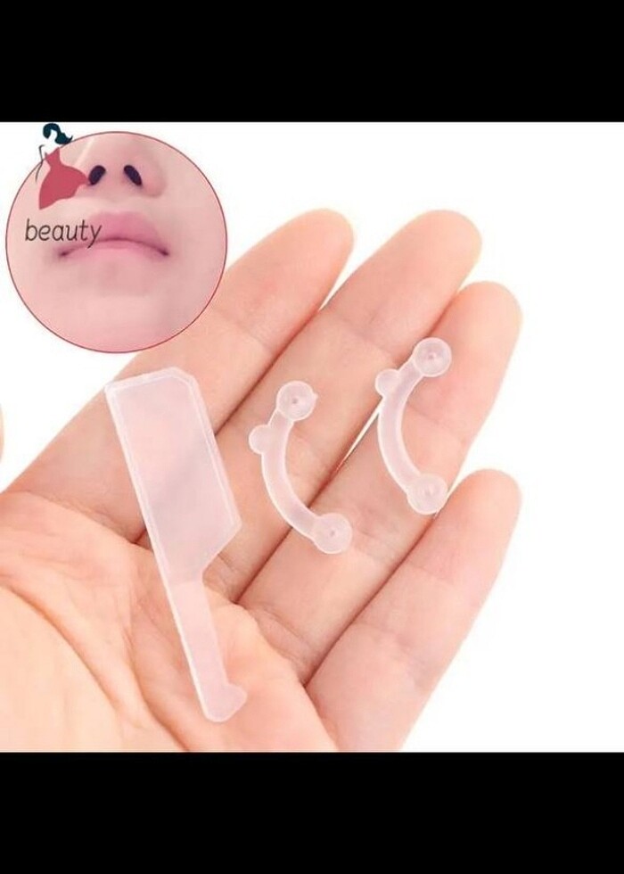 Ürünle birlikte kullanım videosu linki gönderilecektir. Ekstra güçlendirilmiş. 3 beden 6 parça burun ucu kaldırma aparatı. Pahalı plastik cerrahiye ihtiyaç duymadan burnunuzu kaldırın ve şekillendirin. Giymesi ve temiz tutması kolaydır. Istenilen etki için buruna uygulayın, sadece 3 adım !!! Sadece burnunuza sokun! Uyarı: Ilk birkaç kullanımda biraz acıtacak. Bu yüzden başlangıçta çok uzun süre giyilmesi önerilmez. Ilk gün 1-2 saat, sonra 2-3, sonra 3-4 vb. Kullanmadan önce burnunuzu ve klipsleri temizleyin ve ayrıca kullanımdan sonra temizlemeyi unutmayın. Yüzmek, uyumak, yorucu egzersiz yapmak için uygun değildir. 16 yaşın altındakiler ve burun iltihabı, şiddetli soğuk algınlığı, burun rahatsızlığı olanlar için değil. Not:Hijyen kurallarından dolayı paketi açılan ürün iade kabul edilemez. #aparat #burunkaldirma #burunaparati #burunkaldirmaaparati #burunucukakaldirmaaparati