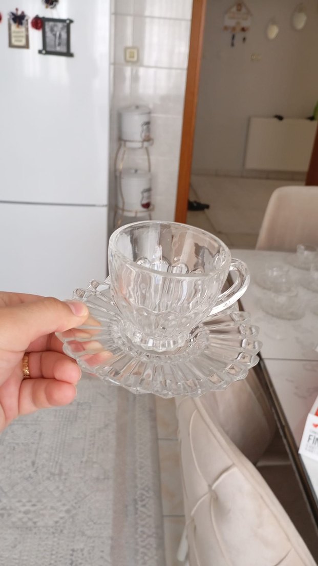 Şeffaf camdan yapılmış, klasik görünümlü desenli fincan ve tabağı. Hafif ve zarif, sıcak içecekler için uygundur. ☕ hiç kullanılmadı sıfır ürün