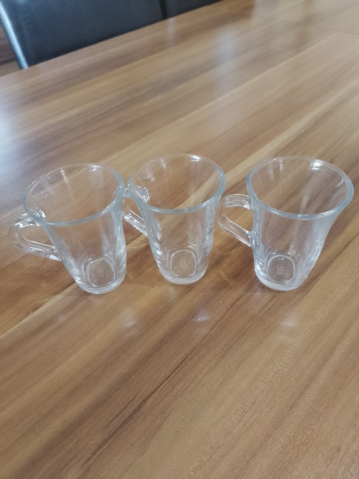 Kulplu, şeffaf camdan yapılmış 3'lü bardak seti. Sıcak içecekler için uygun, dayanıklı ve sade tasarımlı bardaklar. ☕