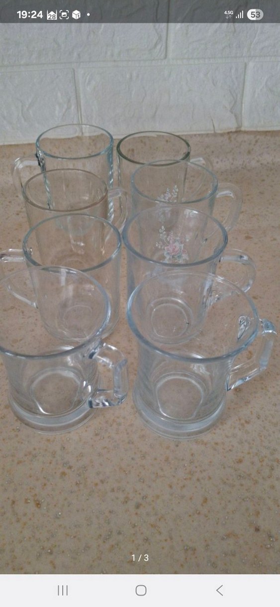 Kulplu, şeffaf camdan yapılmış 8 adet bardak seti. Çeşitli içecekler için kullanışlı ve sade tasarıma sahip. ☕