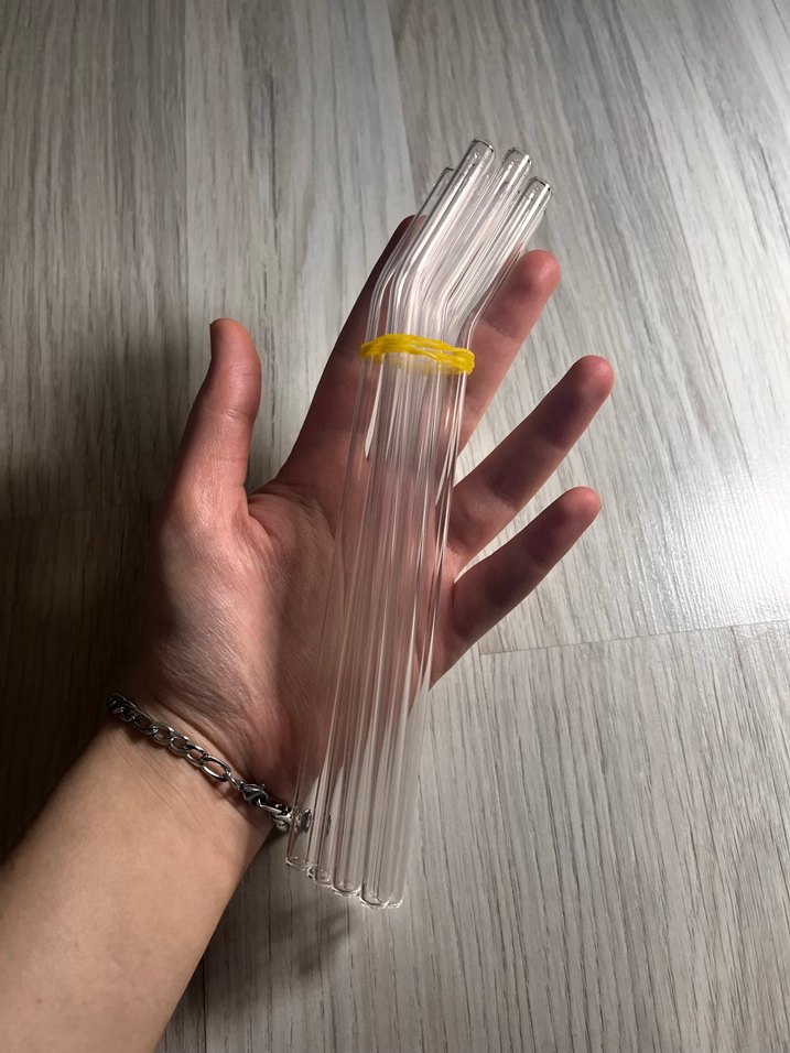Şeffaf cam pipetlerden oluşan set, üzerinde açık sarı lastik bulunmaktadır. Tekrar kullanılabilir.