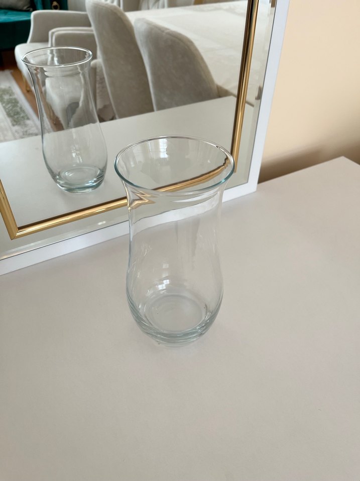 şeffaf cam vazo, sade ve şık bir dekor ürünü.