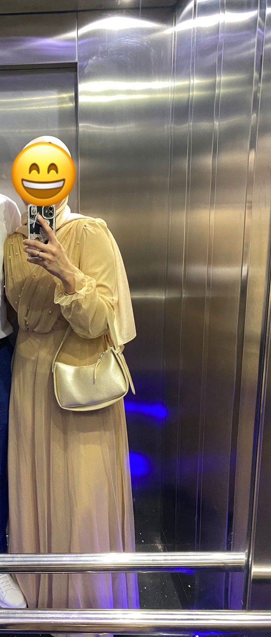 Sentetik kumaştan yapılmış, şeffaf tasarımlı, camel renkli, straplez uzun ve bol kesim elbise. Son resimde filtre var ilk iki resimdeki görünen renkte