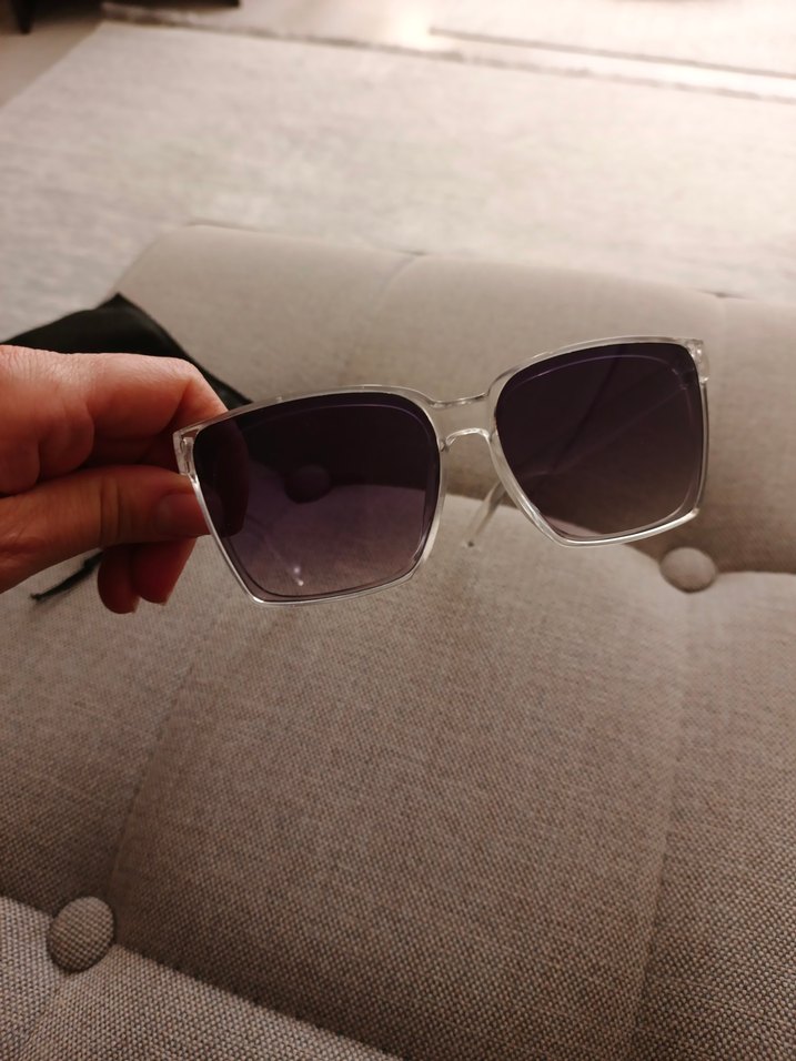 Şeffaf çerçeveli, gri degrade camlı kadın güneş gözlüğü, minimalist ve streetwear tarzını yansıtan trend bir modeldir. ️