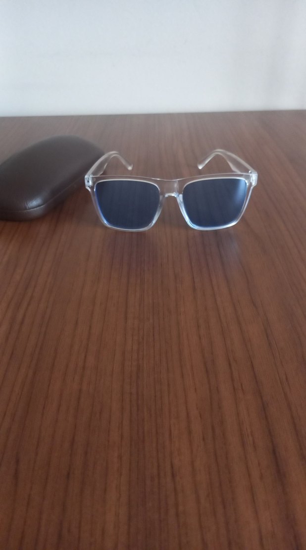 Şeffaf çerçeveli, parlak mavi camlı kadın gözlüğü. Minimalist ve çağdaş tasarıma sahip.KORUYUCU KUTUSU ILE BIRLIKTE