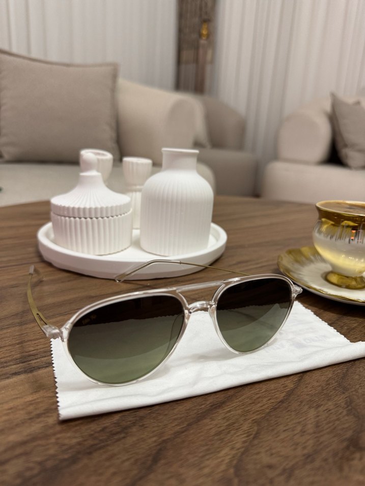 Şeffaf çerçeveli yesıl cam kadın güneş gözlüğü