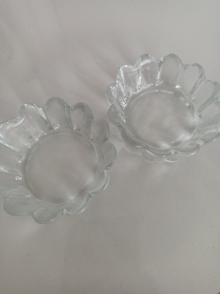 Camdan yapılmış şeffaf çiçek şeklinde mumluk,