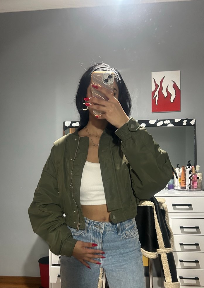 Şeffaf Detaylı Haki Kadın Kot Ceket