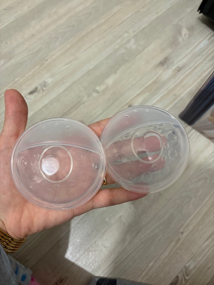 Şeffaf, yumuşak malzemeden yapılmış, rahatlık ve koruma sağlayan bej tonlarında göğüs pedi seti.