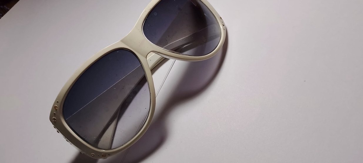 Şeffaf çerçeveli, gri camlı beyaz kadın güneş gözlüğü, minimalist ve çağdaş tasarıma sahiptir. ️