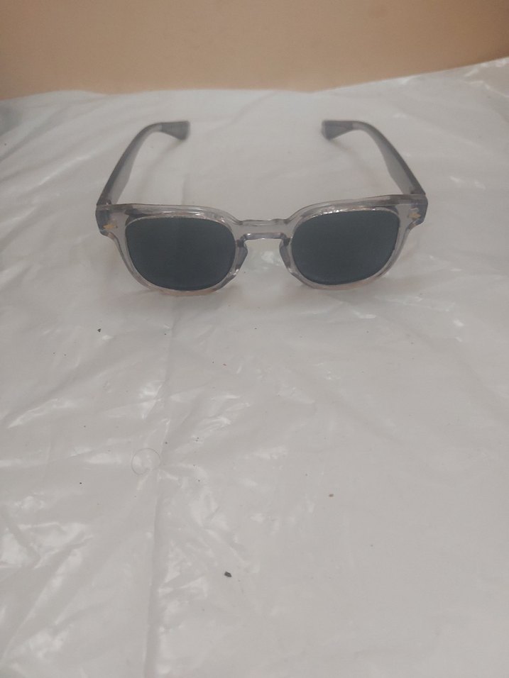 Şeffaf gri çerçeveli, koyu renk camlı erkek güneş gözlüğü. Minimalist ve sade tarz için uygundur. ️