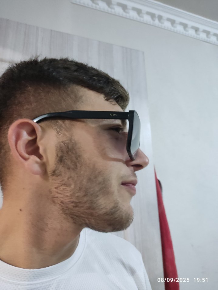 Minimalist tasarımlı şeffaf gri kadın güneş gözlüğü, trend sokak stiline uygun. OCR tarihi 08/09/2025 19:51.