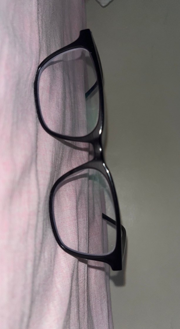 Minimalist tasarımlı, siyah çerçeveli, şeffaf gri camlı kadın gözlüğü. Gotik ve avangart tarzı sevenler için uygun.