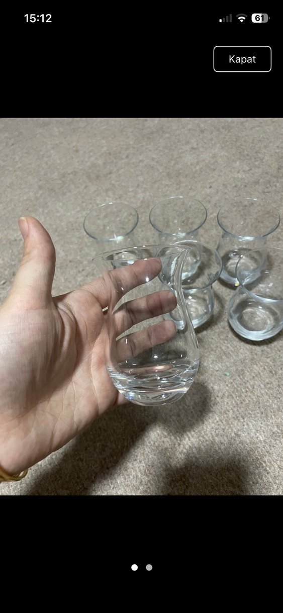 Şeffaf, ince camdan yapılmış çay bardakları seti. İnce belli ve hafif genişleyen üst kısımlarıyla çay içmek için uygundur.
