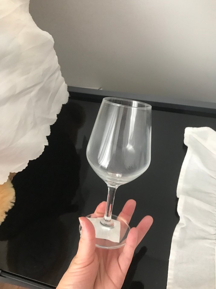 Şeffaf, ince saplı ve altı altıgen şeklinde kadeh bardak.