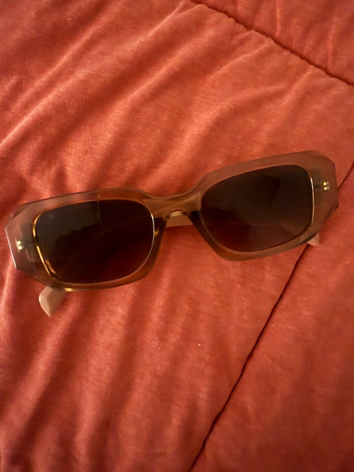 Şeffaf kahverengi, Paris esintili bohem ve retro tarzda kadın güneş gözlüğü. Pastel tonları vintage görünümü destekler. ️