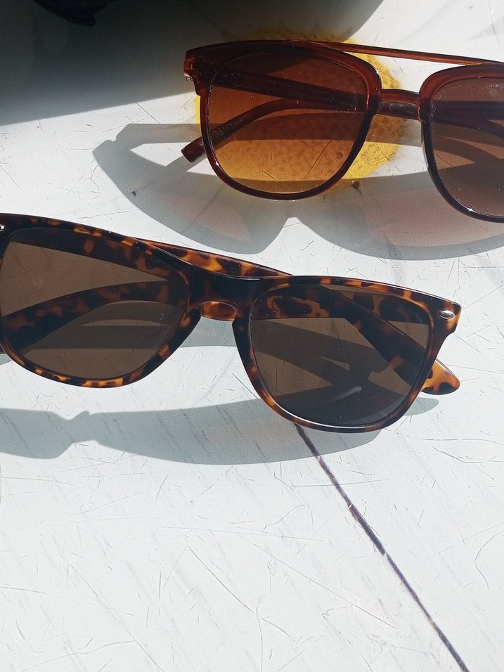 Şeffaf kahverengi çerçeveli, klasik retro tarzda kadın güneş gözlüğü. Bohem ve çağdaş tarzı renkli bir görünümle birleştirir. ️