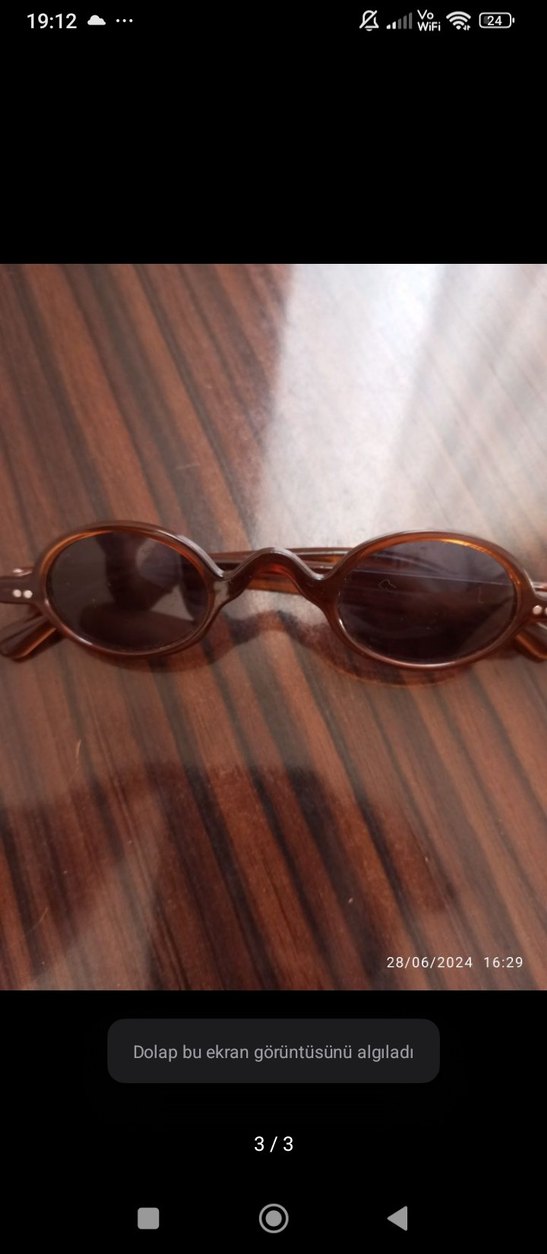 Parlak kahverengi, şeffaf oval çerçeveli vintage kadın gözlüğü, bohem ve retro tarzını yansıtıyor. Tarih: 28/06/2024.