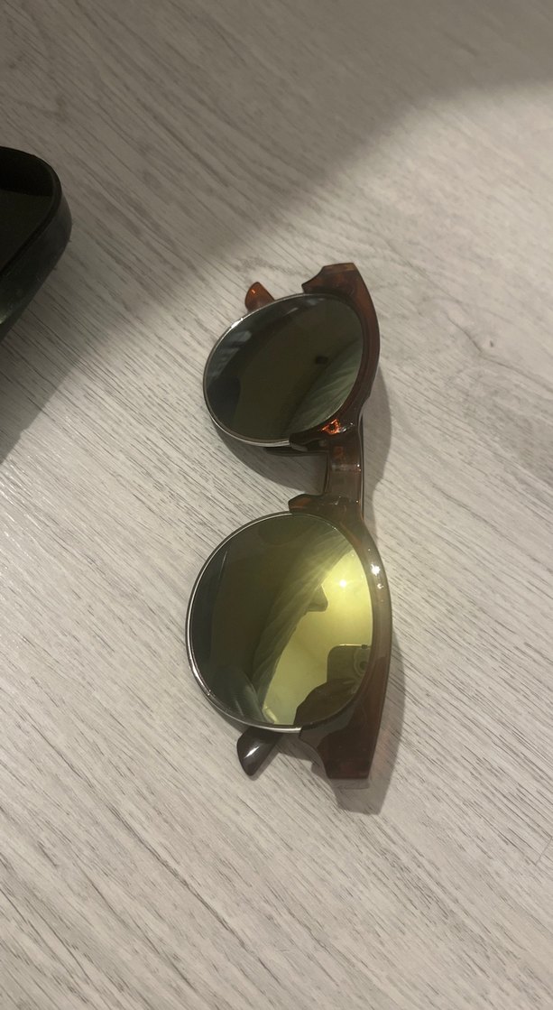 Parlak kahverengi, şeffaf çerçeveli vintage kadın güneş gözlüğü. Bohem ve retro tarzı yansıtır, karşı kültür görünümü için uygun.