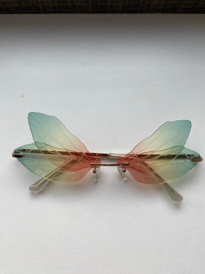 Şeffaf kanat şeklinde pastel çok renkli kadın gözlüğü, bohem ve avangart tarzı yansıtıyor. Hiç kullanılmadı