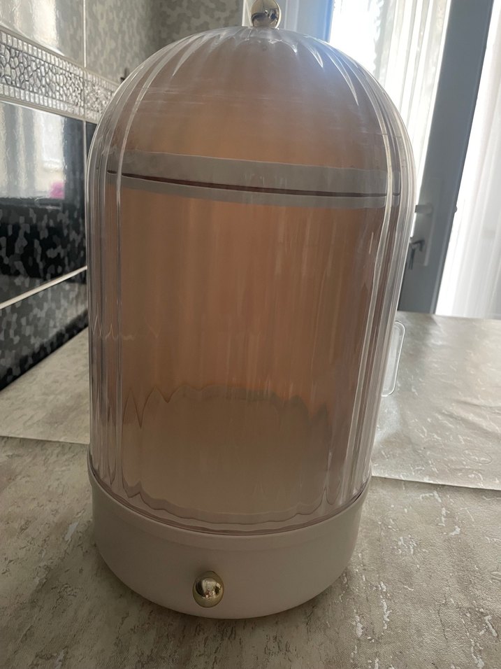 Şeffaf kapaklı ve açık renk tabanlı sterilizatör, önünde basit bir düğme kontrolü bulunur. Kırığı vs yok Etiketi yok