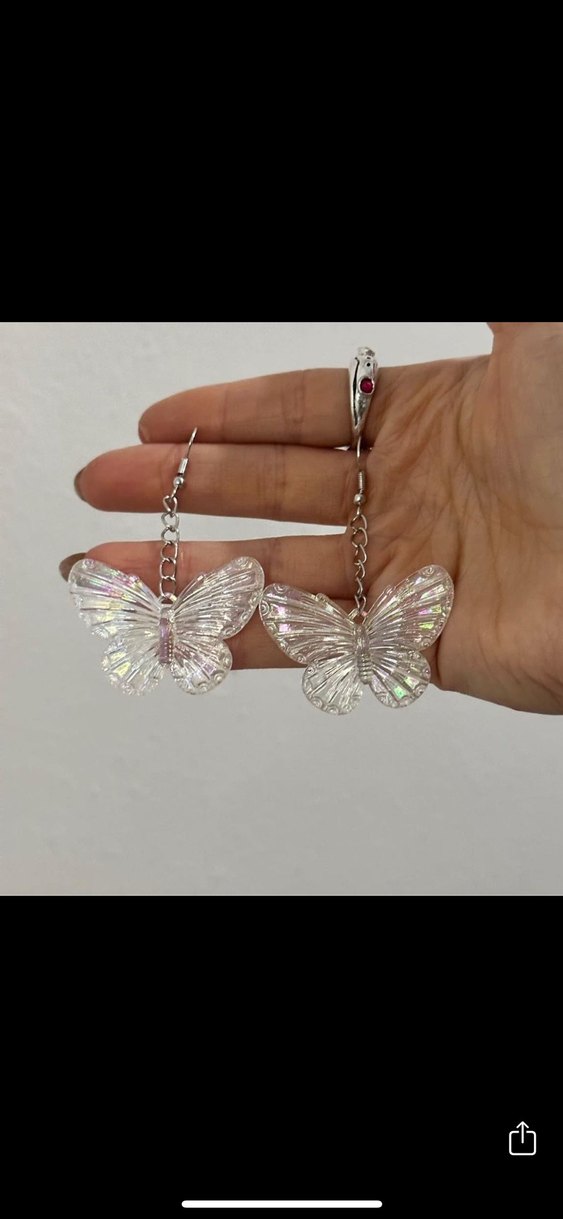 şeffaf Kelebek figurlu parlayan küpeler