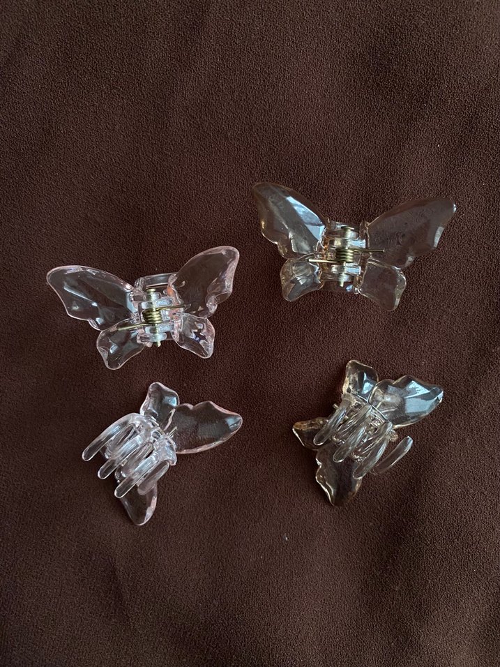 Şeffaf plastikten yapılmış kelebek şeklinde saç tokaları, minimalist ve gotik tarzları şık bir şekilde birleştirir. Yenidir