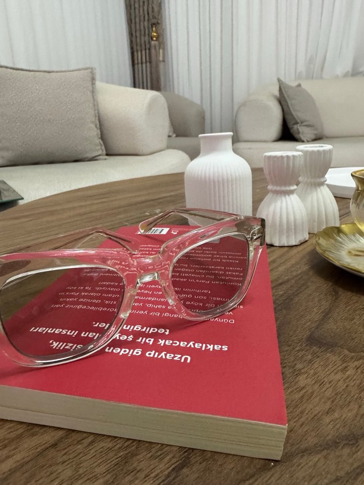 Şeffaf renkte, minimalist ve avant-garde tarzda kadın gözlüğü. Hafif ve modaya uygun, trendsetterlar için ideal. ️