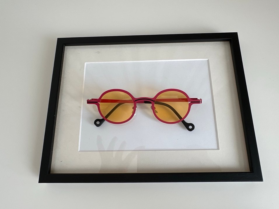 Minimalist yuvarlak çerçeveli, şeffaf detaylı ve sarı tonlu camlara sahip canlı kırmızı kadın gözlüğü, avangart trendsetterlar için uygun. ️