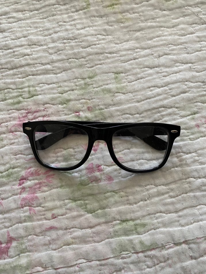 Şeffaf camlı, koyu siyah çerçeveli kadın gözlüğü, bohem ve retro tarzı yansıtan minimalist bir tasarıma sahiptir. ️yenidir