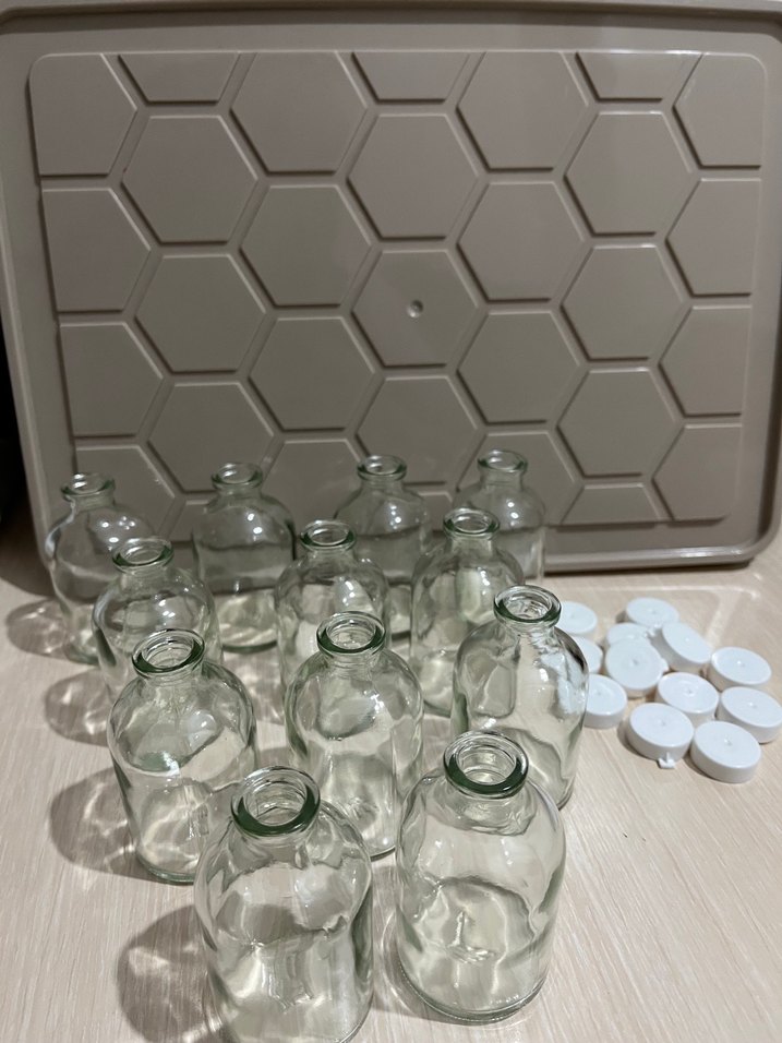 Beyaz kapaklı şeffaf küçük cam şişeler #shot #detoks