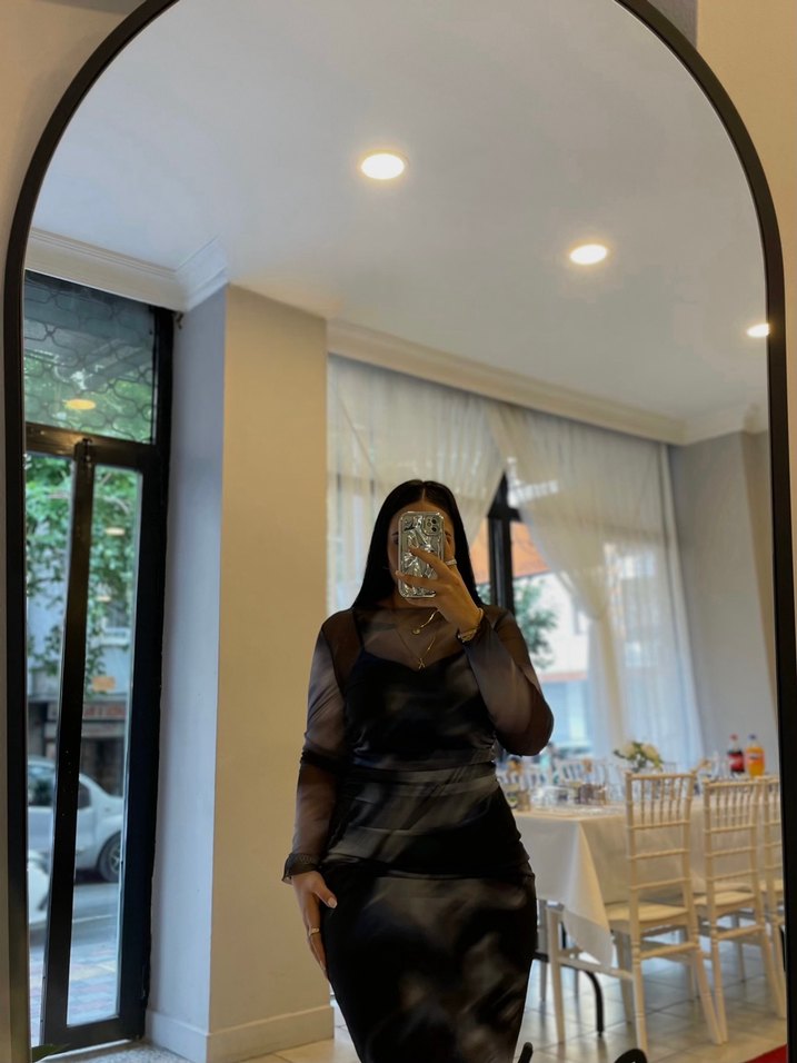 Şeffaf lacivert mavi siyah Midi Elbise