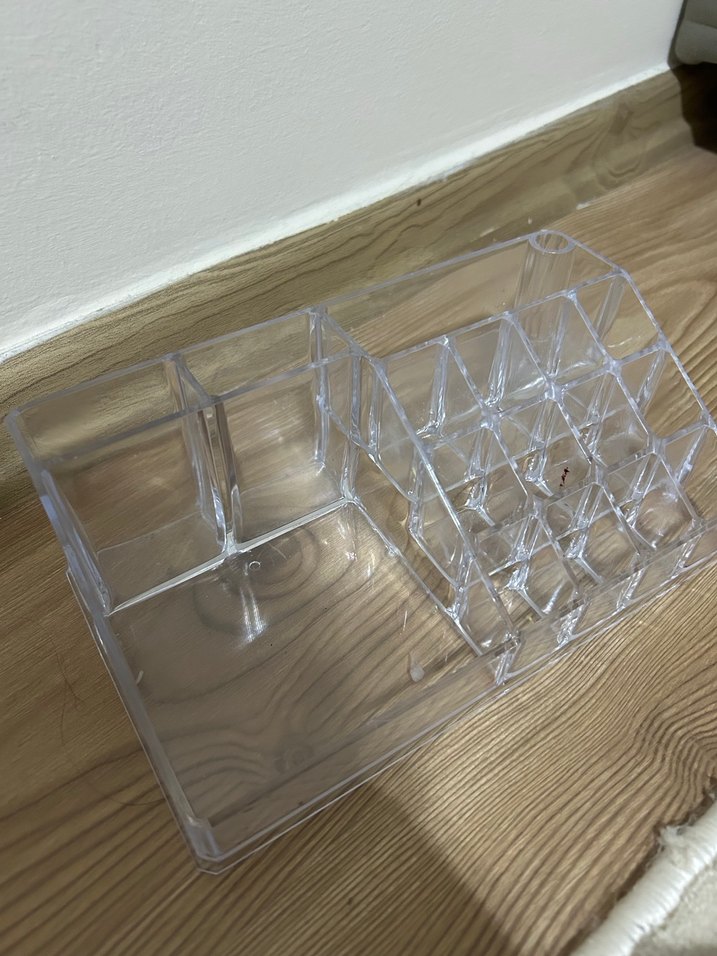 Çoklu bölmeli şeffaf makyaj organizeri, kozmetik ve aksesuarlar için uygundur. Hafif ve kullanışlı tasarım.
