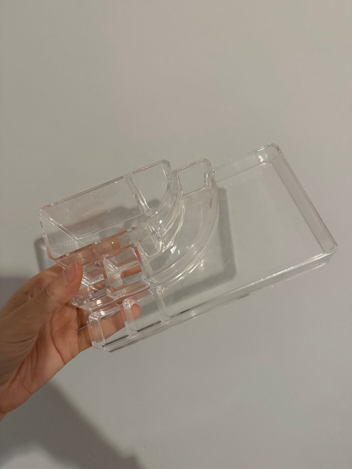 Çoklu bölmeli şeffaf makyaj organizeri, kozmetiklerin düzenli saklanmasına yardımcı olur. Hafif ve kullanışlı tasarım.
